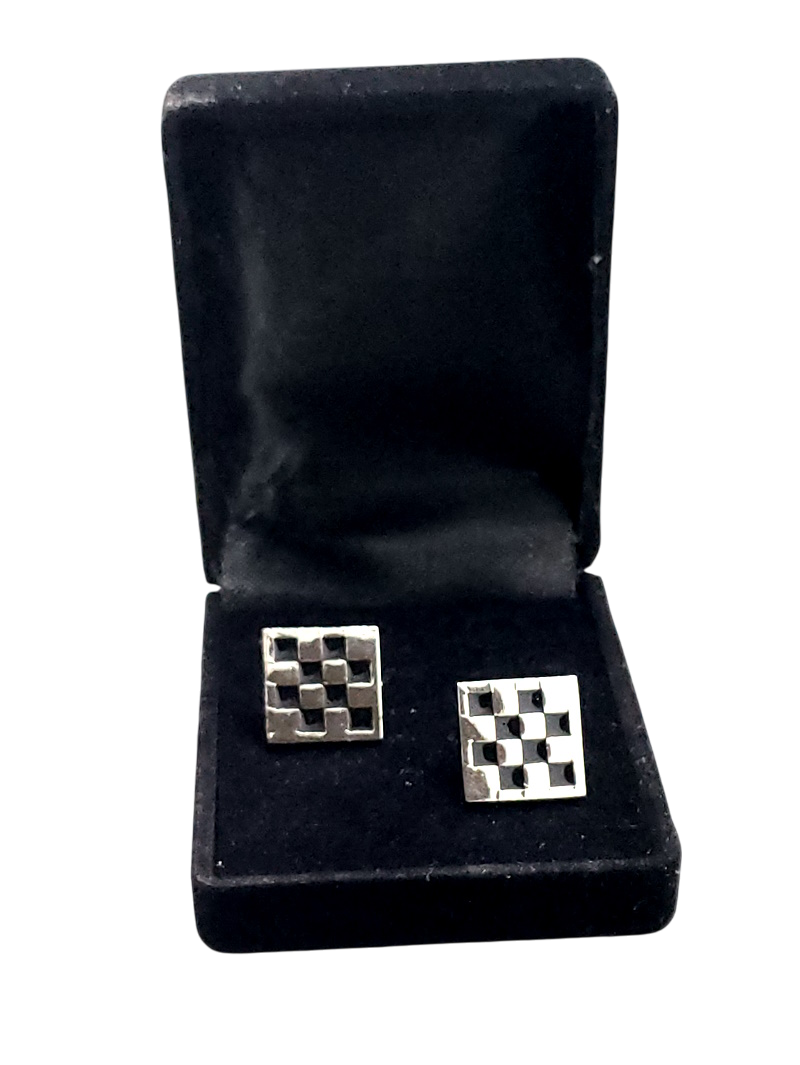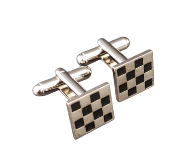 Masonic checkered lapel pin cufflink and tie bar set chrome plated |