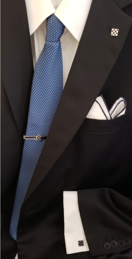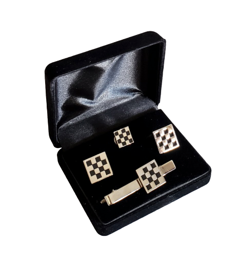 Masonic checkered lapel pin cufflink and tie bar set chrome plated